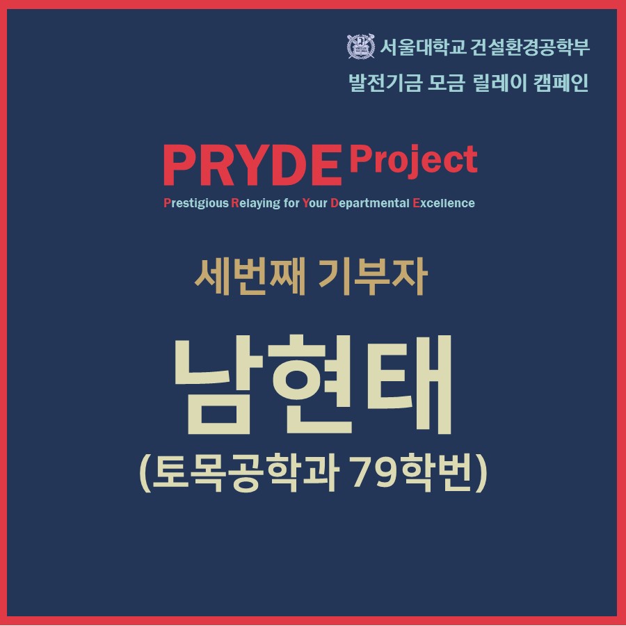 [PRYDE Project] 세번째 기부자- 남현태 (토목공학과 79학번)