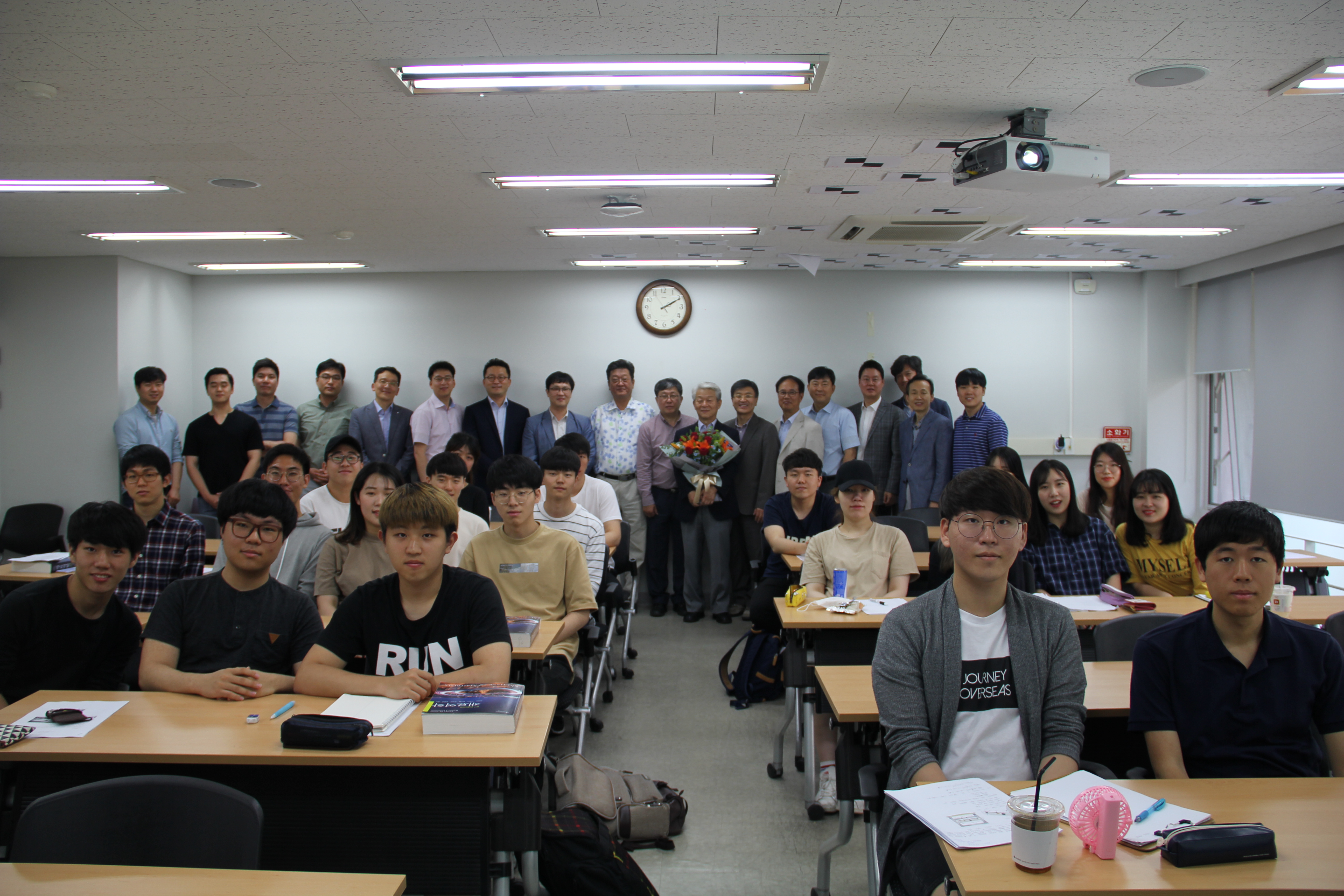 정년퇴임 교수 마지막 강의 2017년 8월 31일자로 정년퇴임을 앞두고 있는 고현무, 서경덕 교수의 마지막 강의가 5월 30일(고현무 교수), 5월 31일(서경덕 교수)에 있었다. 김호경 학부장을 비롯한 건설환경공학부 교수들이 함께 참여하여 강의에 앞서 업적을 소개하고 노고에 감사드리며 꽃다발을 전달하였다.