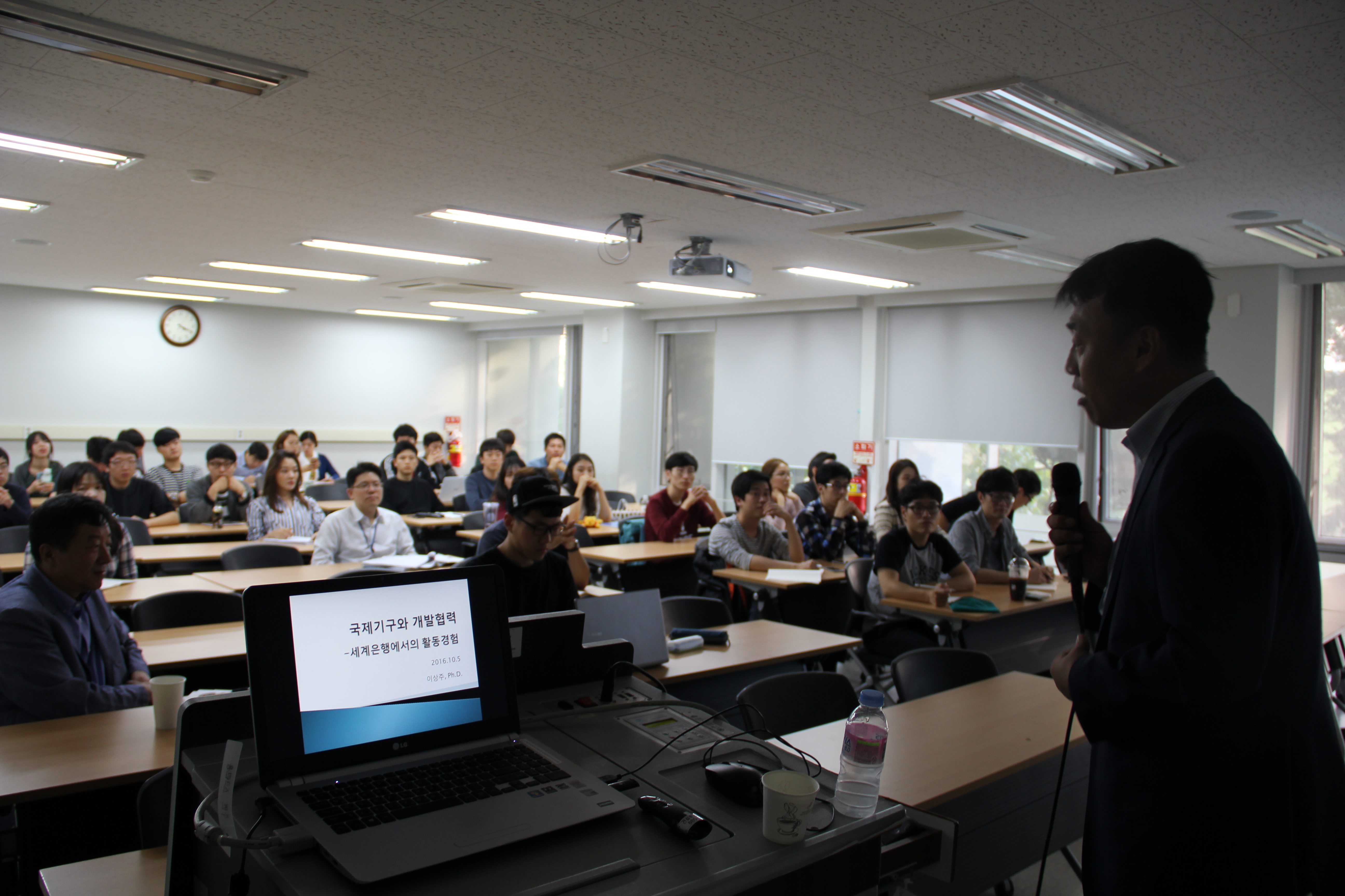 건설환경공학부 초청 특강 개최 건설환경공학부는 우리 학부 및 대학원생들의 졸업 후 진로 모색에 도움을 주기 위하여 다양한 분야의 전문가를 모시고 초청 특강을 개최하고 있다. 이번 학기에는 ‘BK21플러스 차세대 건설가치창조 리더양성 사업단’의 후원을 받아 총 3회에 걸쳐 진행하였고 다양한 분야 및 주제에 흥미를 가진 많은 학생들이 참여하였다. 일시 강연자 주제 10월 5일(수) 이상주 국토교통부 해외건설정책과 서기관 “국제기구와 개발협력- 세계은행에서의 활동경험으로” 11월 2일(수) 이만섭 COWI_덴마크, Senior Project Director “To be a Global Engineer” 12월 7일(수) 김대하 서울대학교 토목동창회장 “건설인의 미래설계”