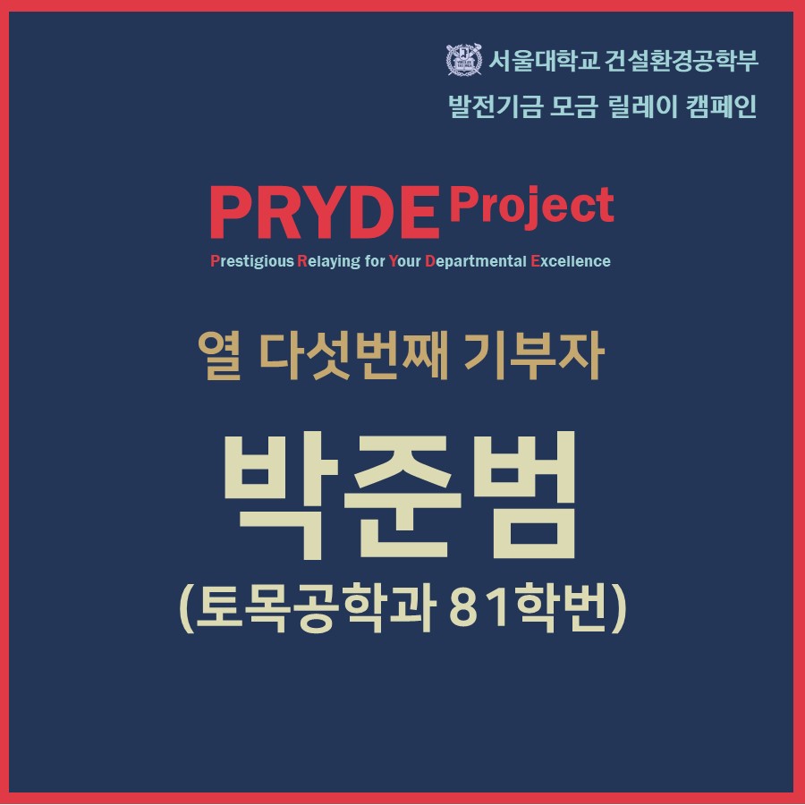 [PRYDE Project] 열 다섯번째 기부자- 박준범(건설환경공학부 교수)