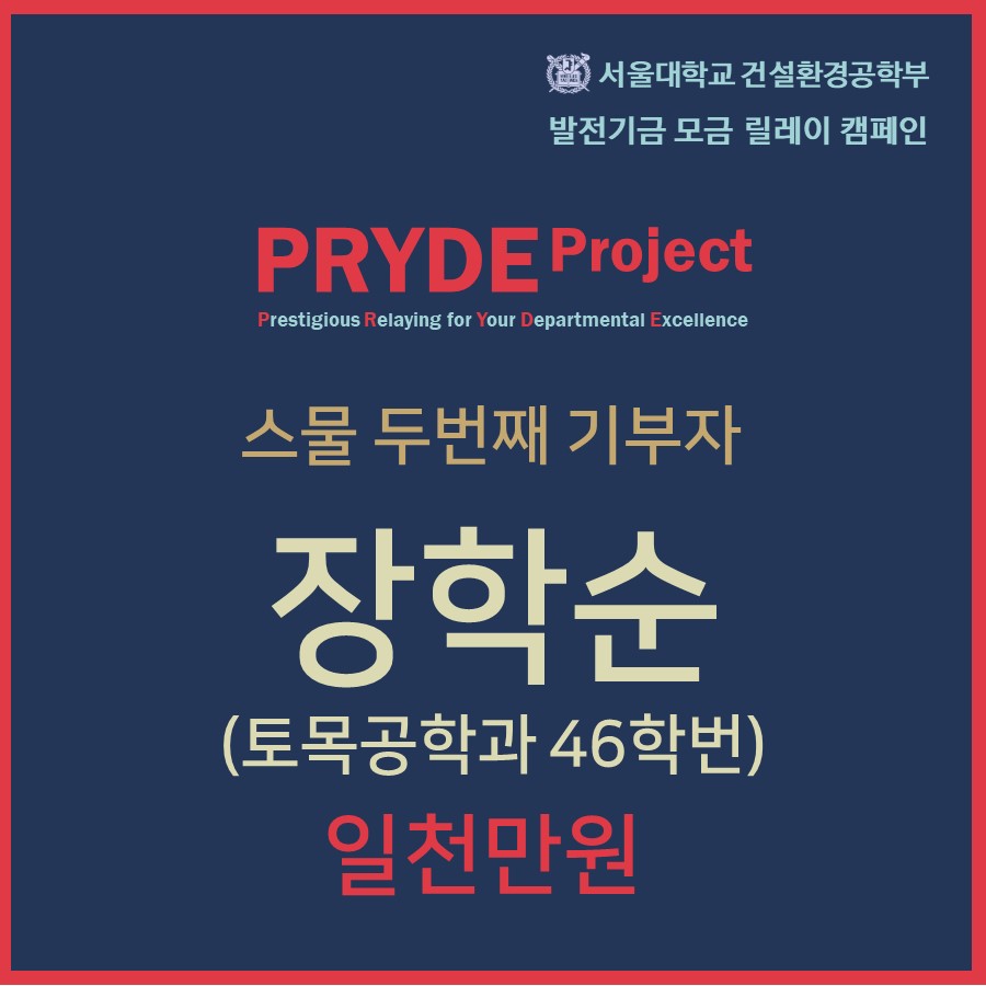 [PRYDE Project] 스물 두번째 기부자- 장학순(토목공학과 46학번)