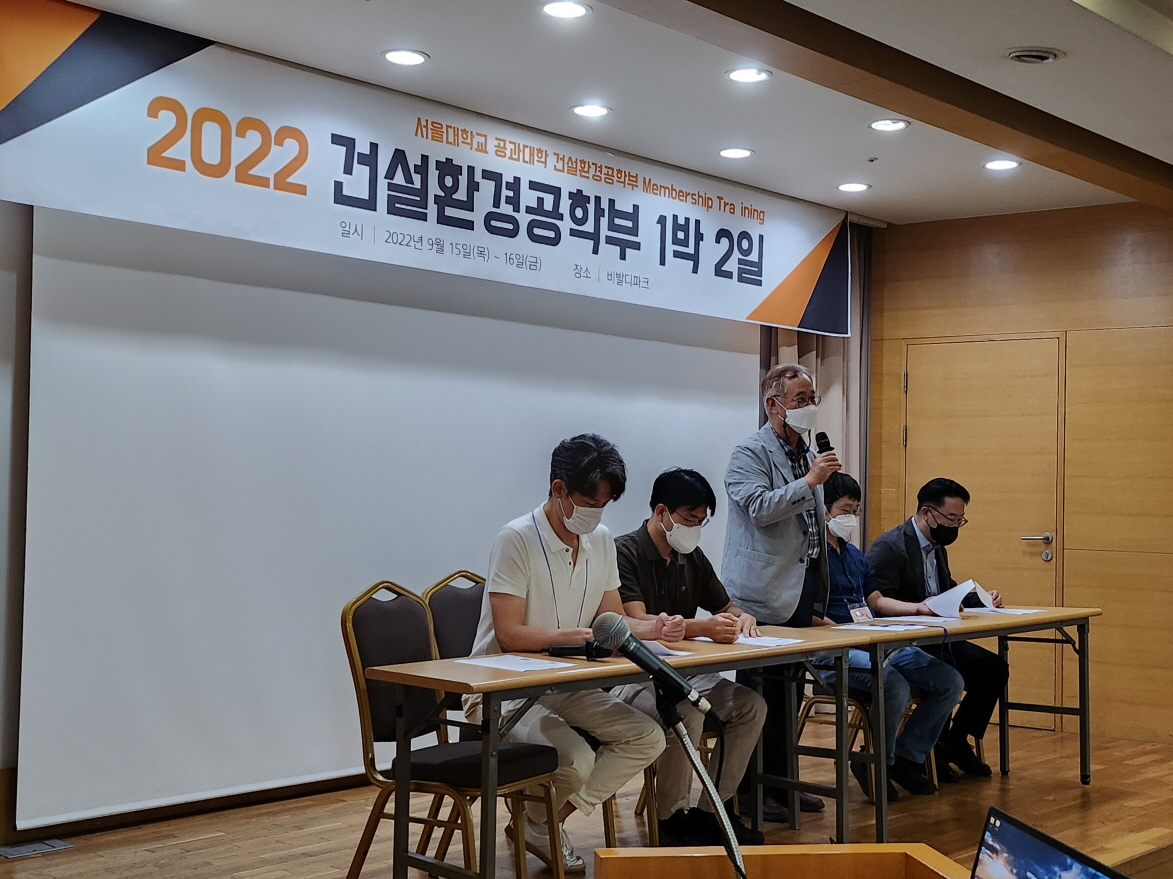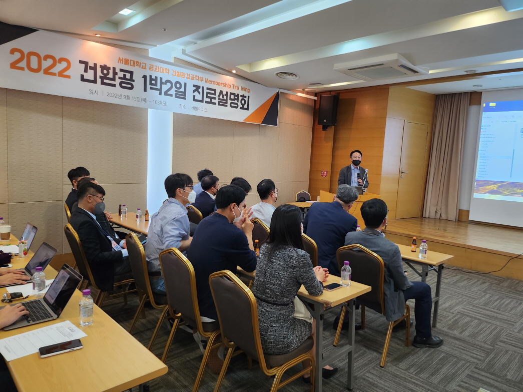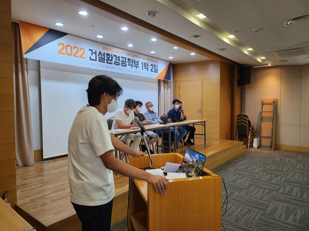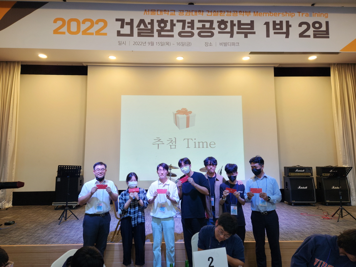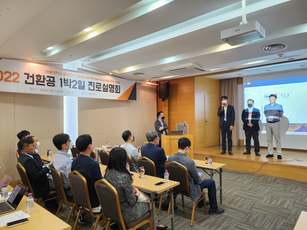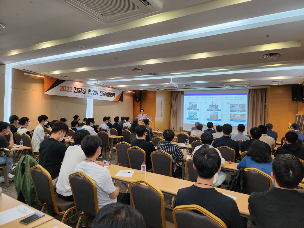 건설환경공학부는 2022. 9. 15.(목) ~ 16.(금) 양일간 강원도 홍천 비발디파크에서 '2022학년도 건설환경공학부 1박 2일'을 개최하였다. 건설환경공학부 학부생, 교수, 직원, 동문 등 120여명이 참여한 동 행사는 교수님과의 대화, 진로 설명회, 단합의 밤 등의 일정으로 진행되었다.