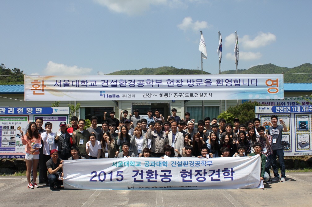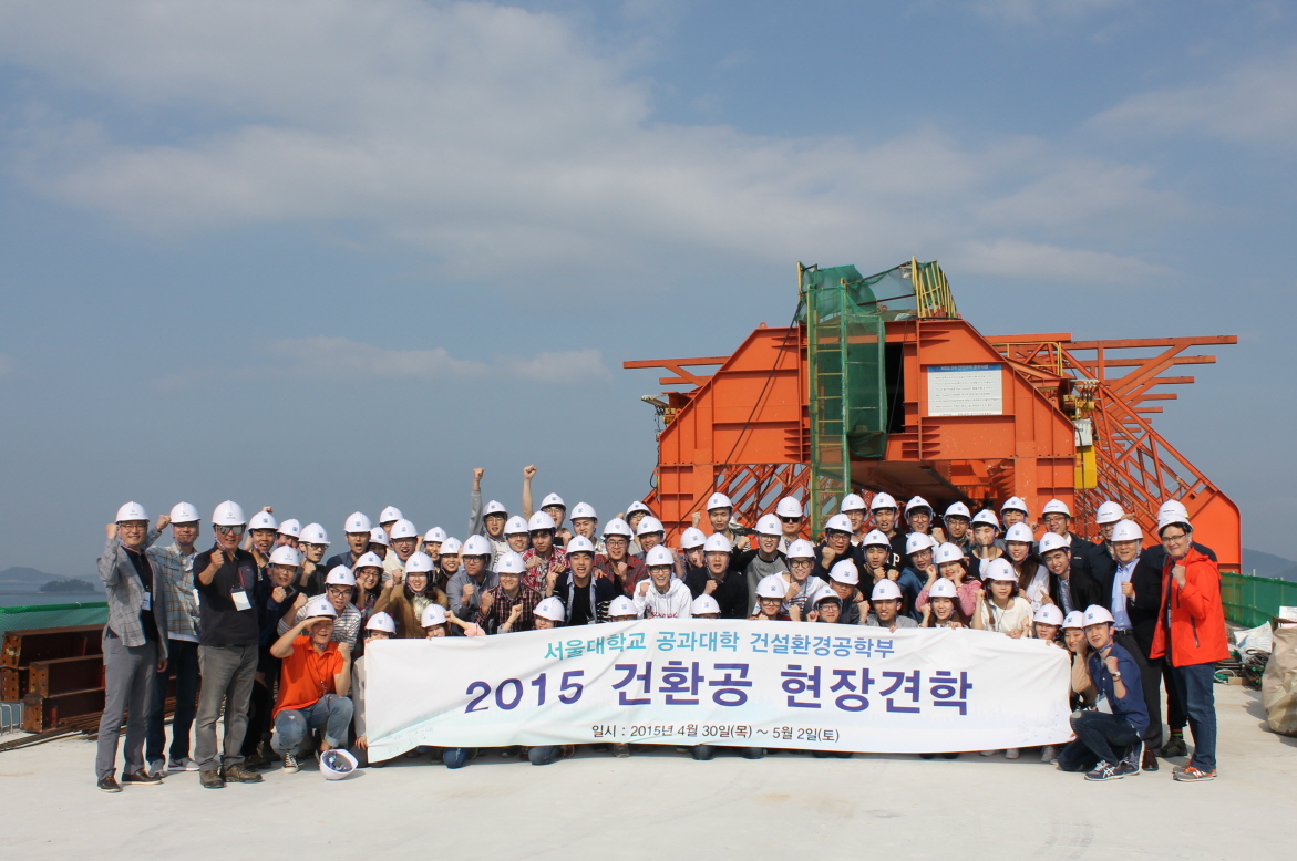 430~ 5223일간 건설환경공학부지구환경시스템공학부 3,4 학년 학부생들이 현장견학을 다녀왔다. 68(학부생 57, 교수 10, 직원1)이 현장견학에 참가하여 목포 새천년대교 시공 현장 및 진상-하동(1) 도로건설현장을 방문하였다.