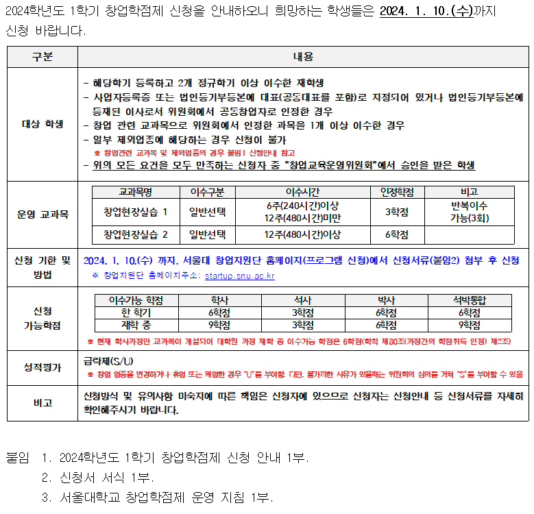 [붙임1] 2024학년도 1학기 창업학점제 신청 안내.pdf (100.9K)