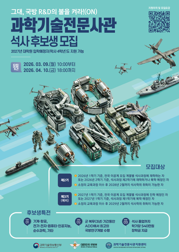 가. 목적 : 첨단 과학기술 기반 국방력 강화를 위한 우수 국방연구개발 인력 확보및 국방 분야 혁신성장 구현을 위한 국방과학기술 전문가 양성