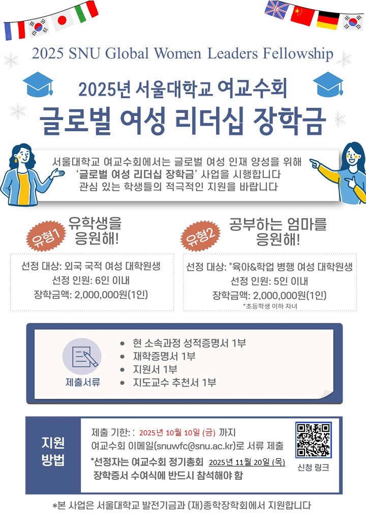 *For any further inquiries, please contact the SNU Women Faculty Council via email at snuwfc@snu.ac.kr.