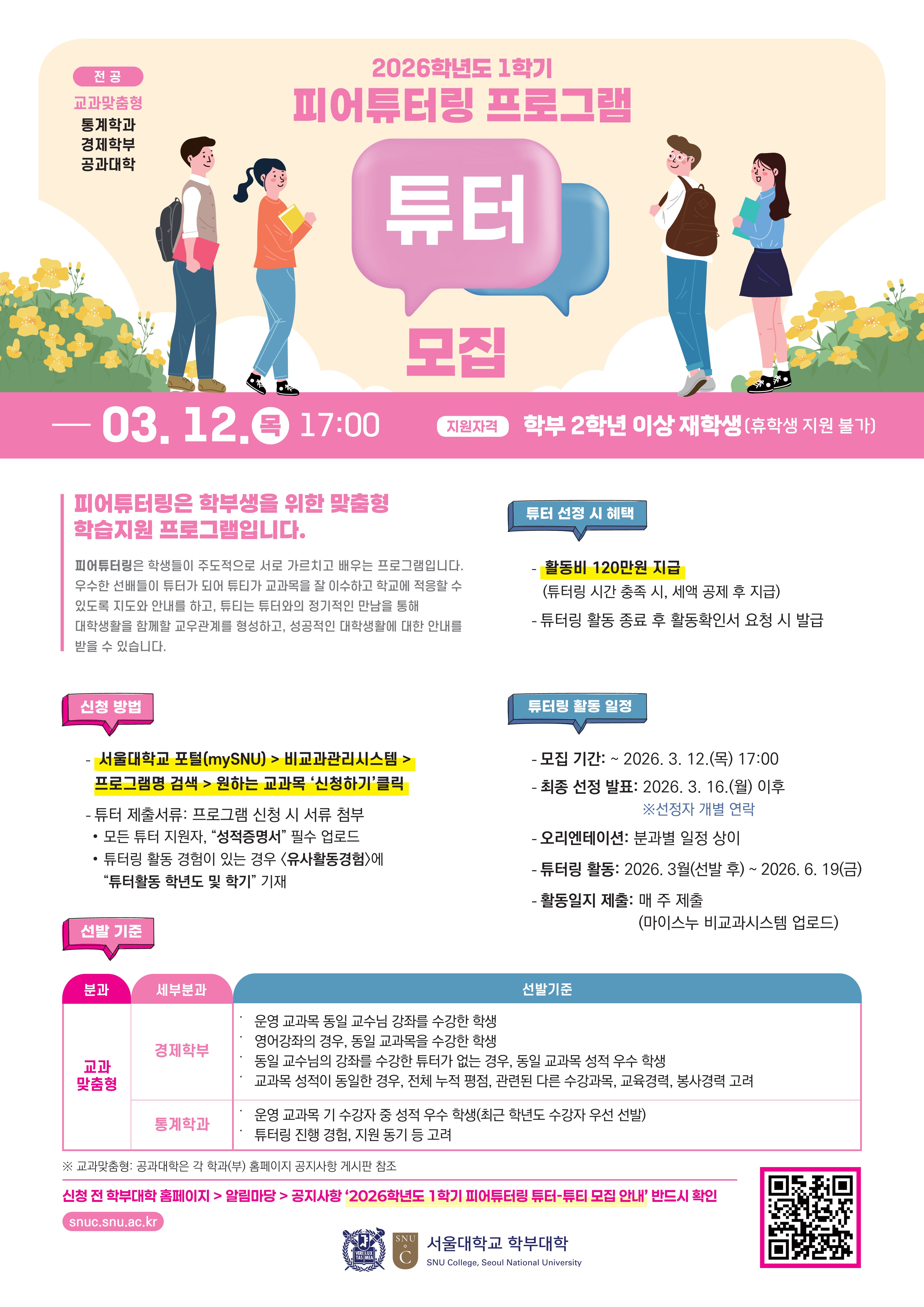 2026학년도 1학기 피어튜터링 튜터-튜티 모집 안내(~3.12.(목) 17:00)